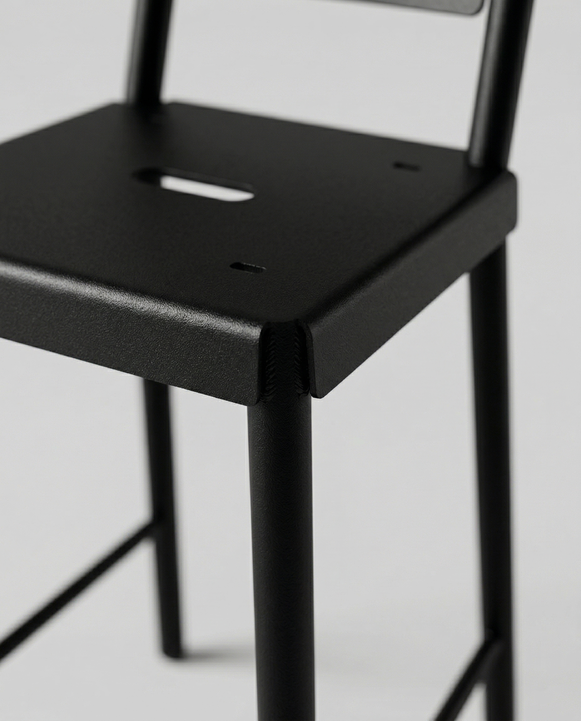 Een brede, hoge zitbank die de actieve houding van een barkruk combineert met het comfort van een bank. Ontworpen om met meerdere personen tegelijk aan de bartafel aan te schuiven, of dat nu op een horecaterras is, in de kantine of in de tuin.