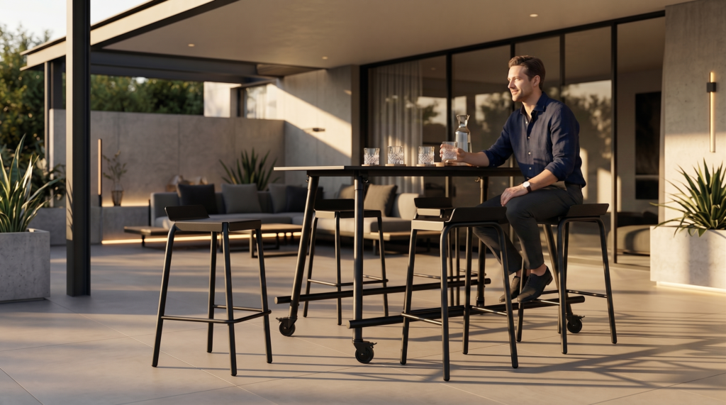 Een bartafel die tegen een stootje kan en waar je met je vrienden aan samenkomt.
