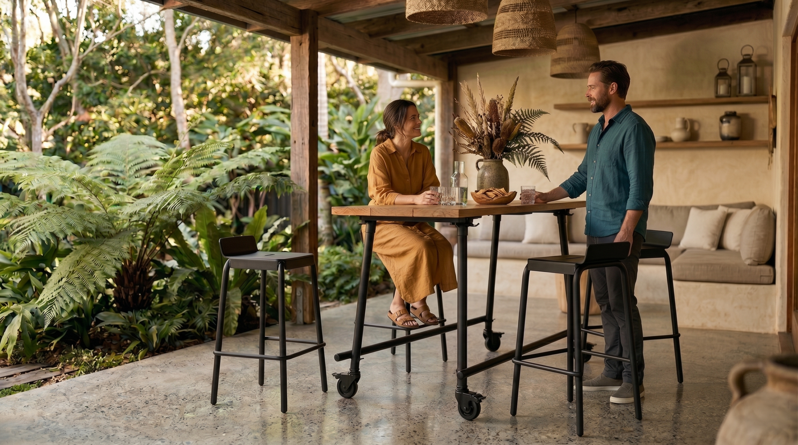 De complete setting om het actieve zitten aan de barbank af te wisselen met ontspanning.